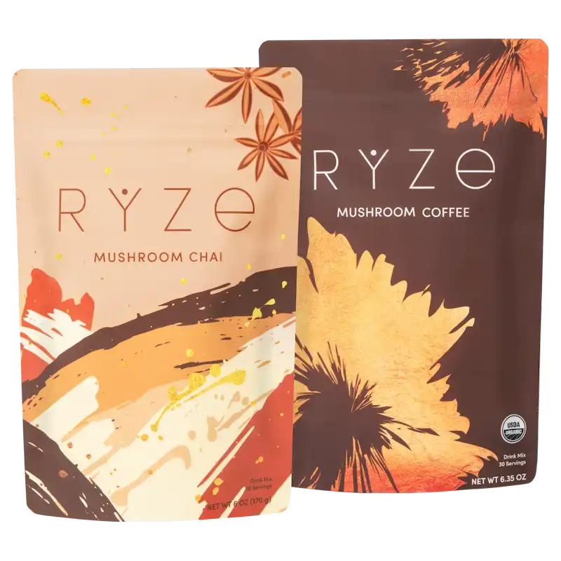 Savor the flavor of delicious chai while also giving your body and mind a boost. RYZE Chai is packed with 6 adaptogenic mushrooms and warming Ayurvedic spices to deliver balanced energy, better focus, and immune support. Pair this with best-selling mushroom coffee for a potent daily ritual you can count on. A chai latte, loaded with benefits.