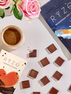 RYZE Nighttime Cocoa guarantees your best sleep ever. Looking for extra chocolate? Melt your RYZE Mushroom Chocolates in your nightly cup for a smooth, rich taste.