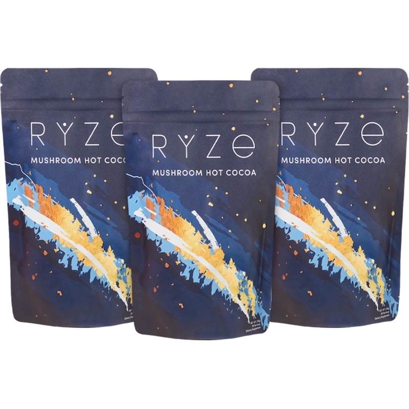 RYZE Mushroom Hot Cocoa, a nighttime treat that marries the magical calming powers of reishi with the snooze-inducing benefits of L-theanine, glycine and melatonin for a blend that helps you unwind at night and wake up refreshed in the morning. Blended with cacao powder for powerful antioxidants and coconut water for hydration, you’ll start a better day the night before.