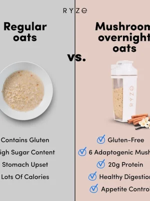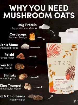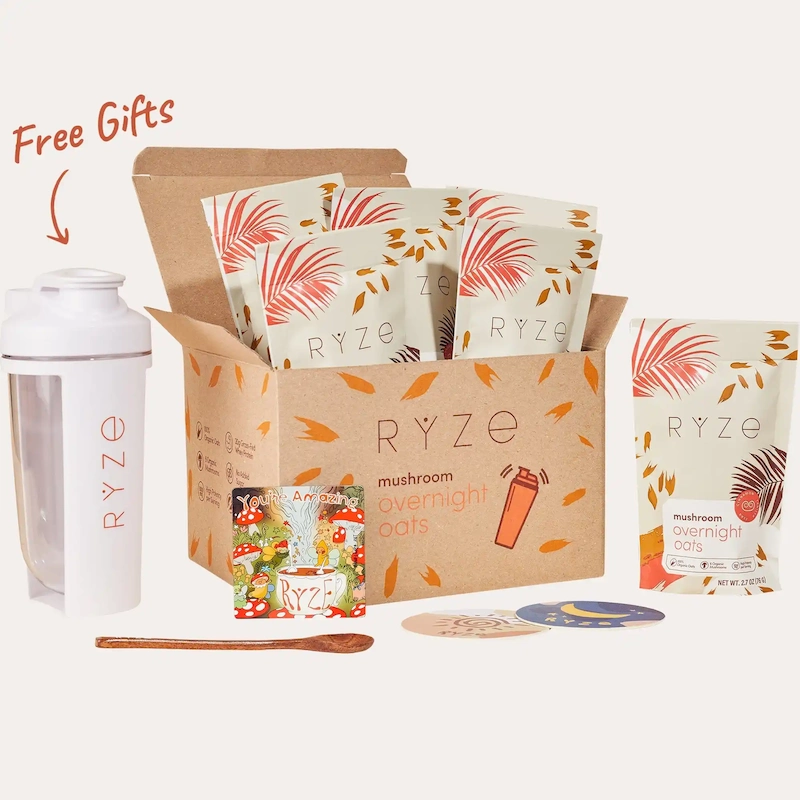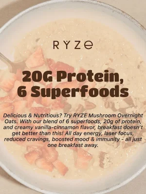 RYZE Overnight Oats is powered by 20g of protein, 6 adaptogenic mushrooms and gluten-free organic oats. 30 second prep and you can enjoy the most delicious breakfast you’ve ever had!