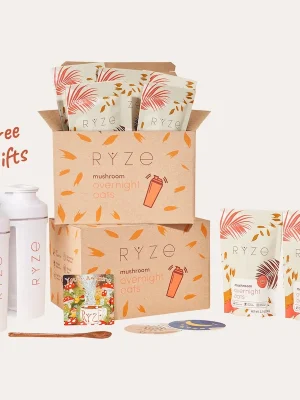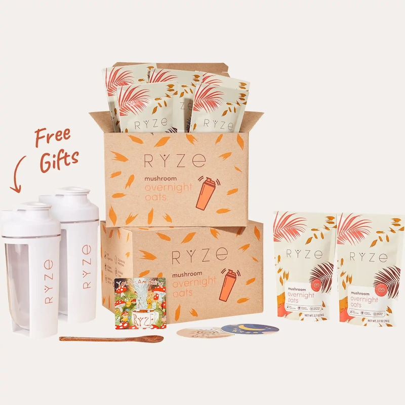 RYZE Overnight Oats is powered by 20g of protein, 6 adaptogenic mushrooms and gluten-free organic oats. 30 second prep and you can enjoy the most delicious breakfast you’ve ever had!